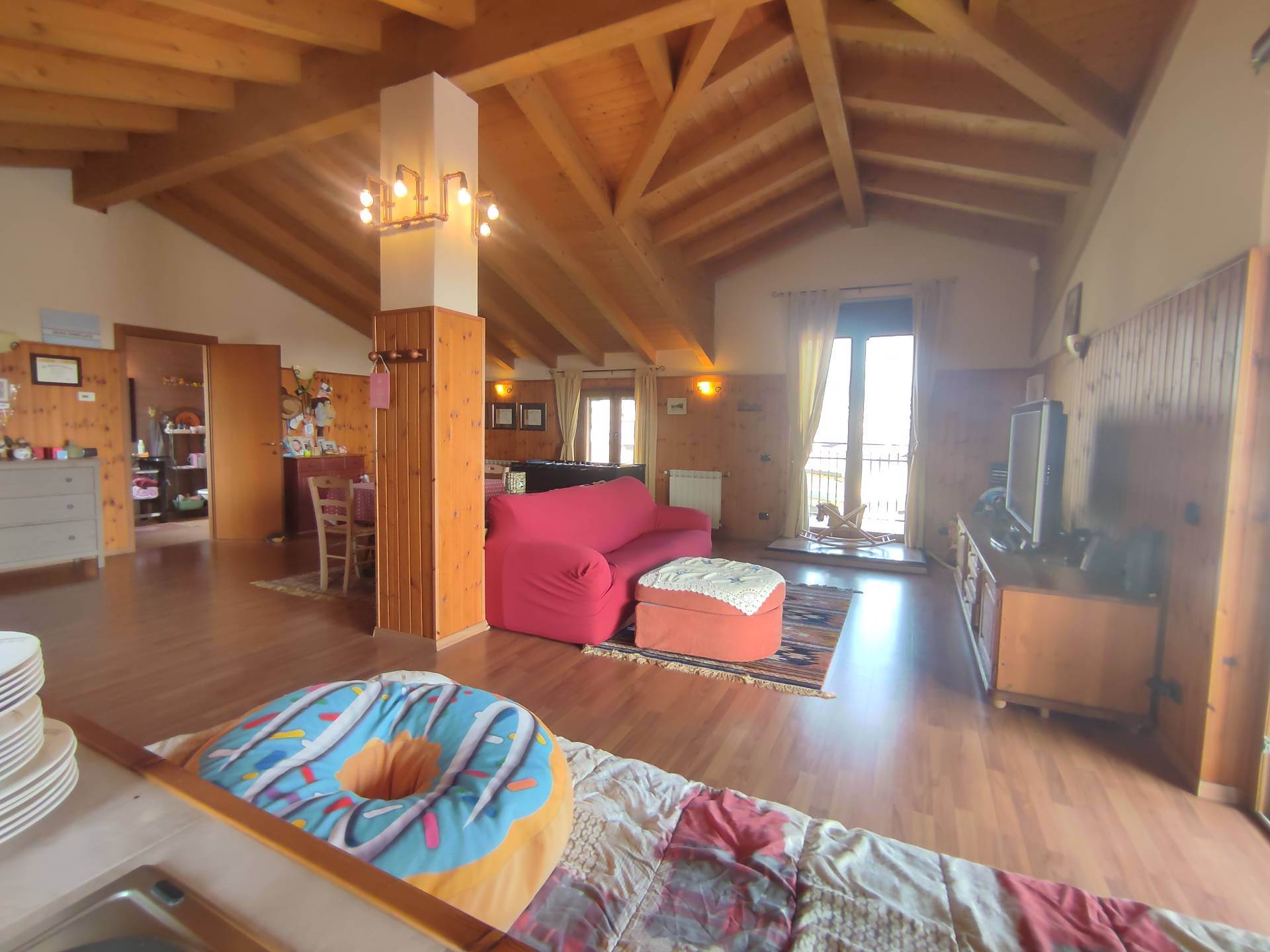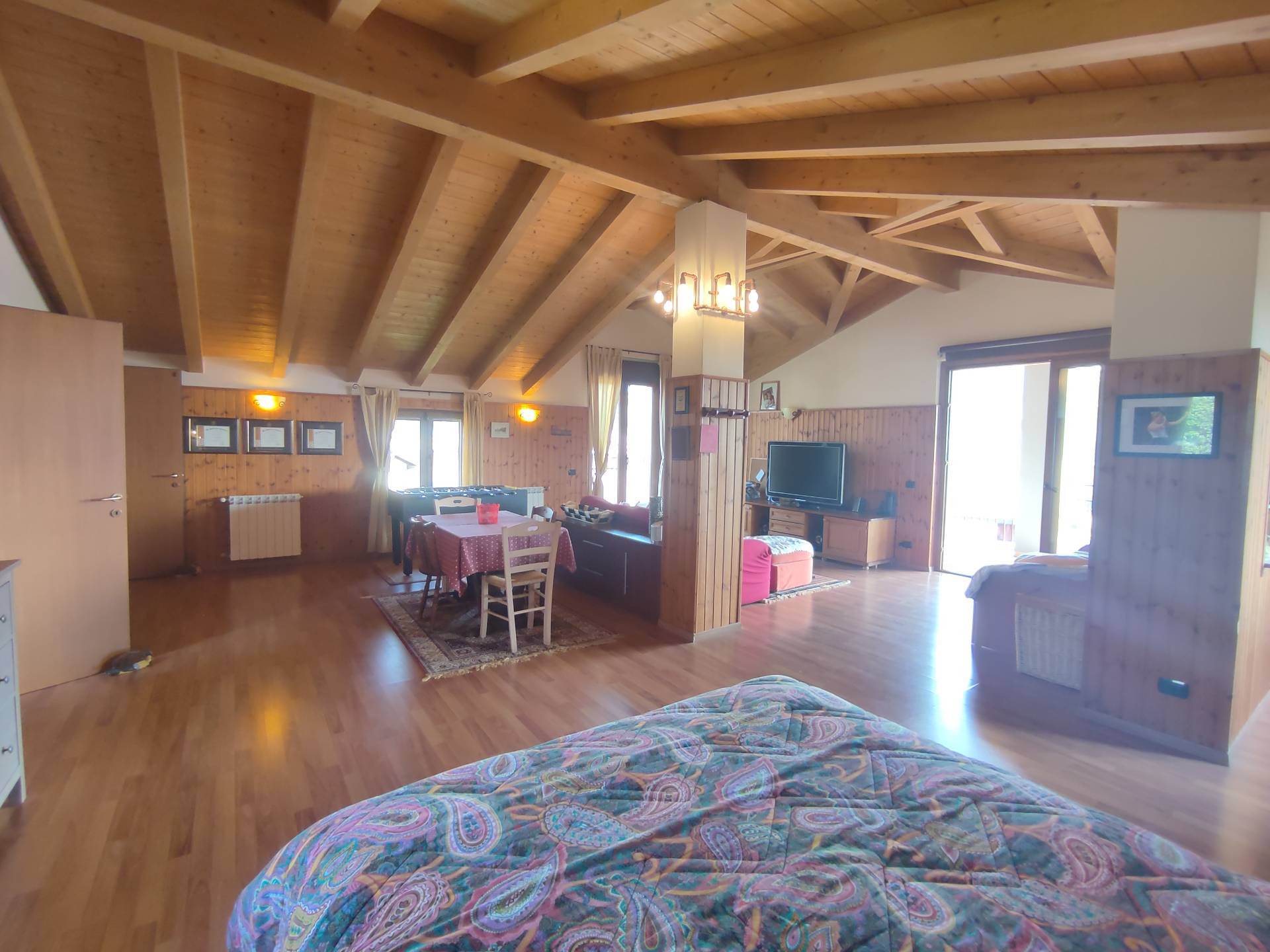 Questa villa a San Fermo della Battaglia non è solo un’abitazione, ma un rifugio di luce sospeso tra cielo e terra. Situata in una bella zona residenziale panoramica, la proprietà accoglie i suoi ospiti con l'abbraccio verde di un giardino privato che circonda l'intera struttura, garantendo una privacy assoluta e un contatto costante con la natura. Il Cuore della Casa: Comfort e Luce. Varcata la soglia, si viene avvolti da un'atmosfera di moderna eleganza. La recente ristrutturazione ha saputo coniugare un design raffinato con le più avanzate tecnologie per il risparmio energetico: l'impianto fotovoltaico e la climatizzazione assicurano un benessere termico che accarezza ogni stanza. La zona abitativa principale si sviluppa interamente su un unico piano. L’Incanto del Piano Mansarda. Salendo verso l'alto, la villa svela il suo segreto più prezioso: nel sottotetto troviamo un ampio open space mansardato. Questo ambiente, caratterizzato dal calore del legno e da un'architettura ariosa, si apre su un terrazzo panoramico mozzafiato. È qui che l’emozione si fa intensa: la vista spazia libera sull'orizzonte, offrendo tramonti indimenticabili e una prospettiva privilegiata che fa sentire padroni del mondo, nel silenzio e nella pace di una posizione invidiabile. Spazi per la Condivisione e il Relax. Il piano inferiore è dedicato al tempo di qualità. La grande taverna è il luogo ideale per conviviali cene invernali, circondati dal calore degli affetti. I locali accessori e l'ampio box completano la funzionalità di una dimora pensata per non dover scendere a compromessi tra estetica e praticità. Questa villa è la scelta perfetta per chi cerca una casa che parli di futuro, di sostenibilità e di bellezza, senza rinunciare a quel tocco di magia che solo una vista aperta può regalare.